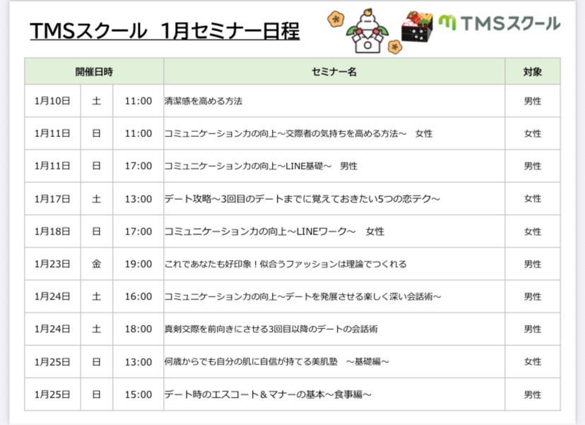 1月も婚活に役立つオンラインセミナーが沢山あります(無料)